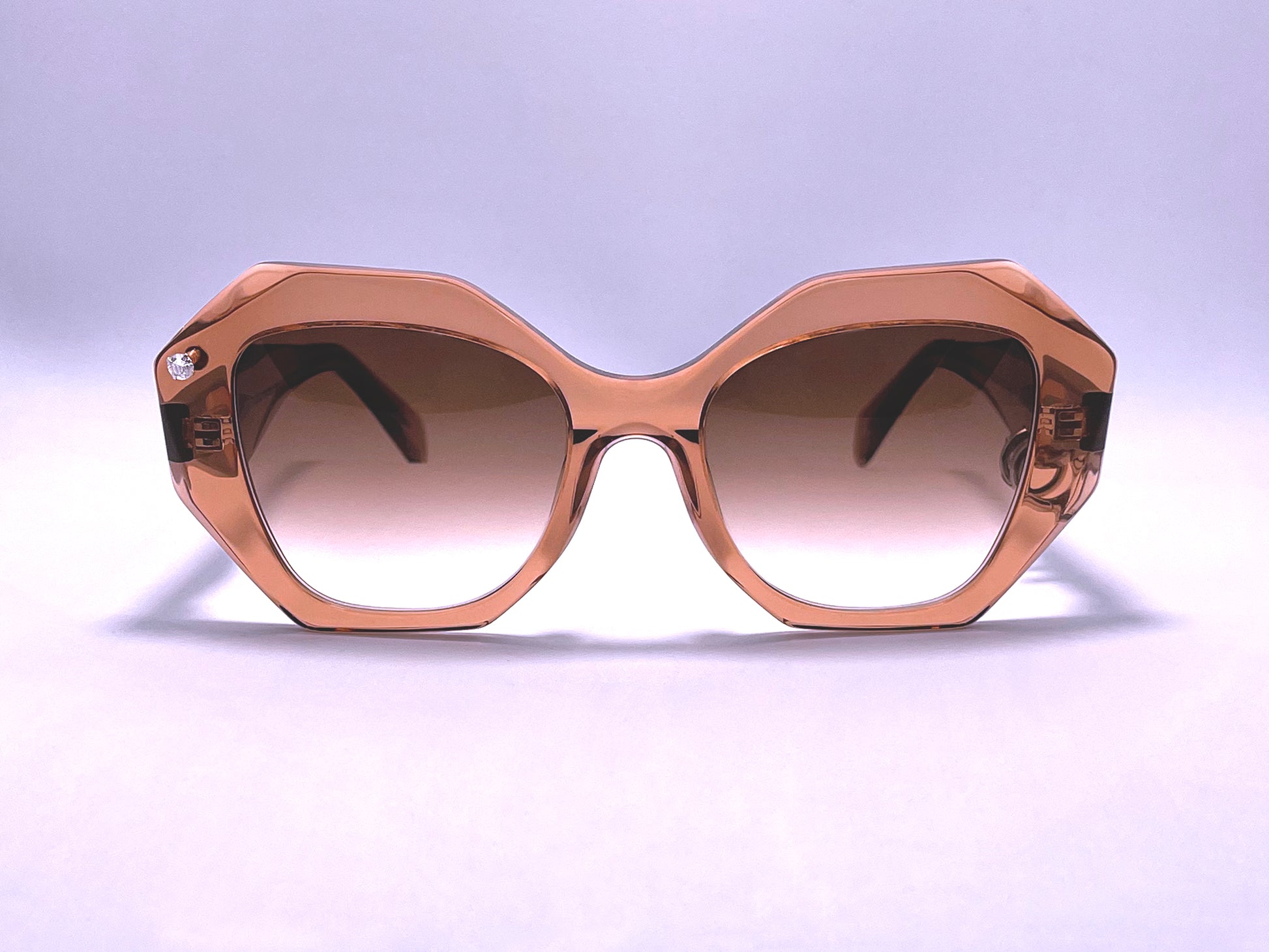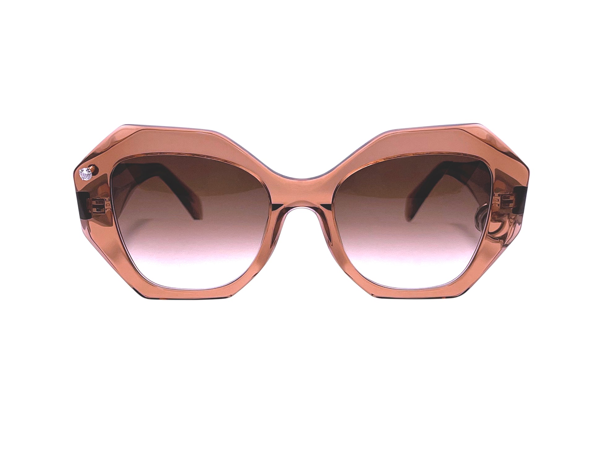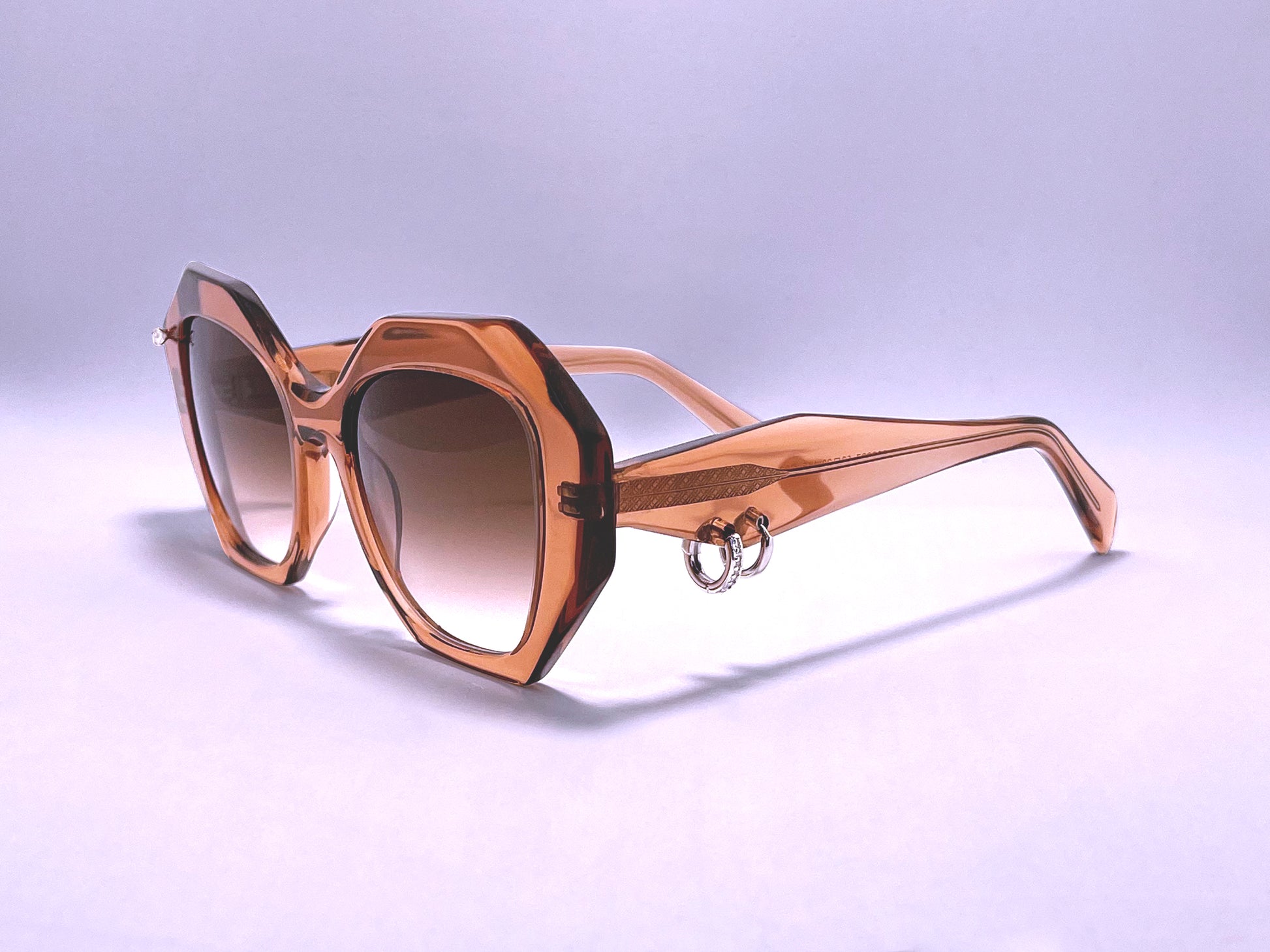 Avec une paire de "10 HUGS Crystal Brown" rehaussée par un piercing de lunettes sur la face avant et 2 bijoux créoles sur une branche vous aurez un style néo-rétro et féminin !